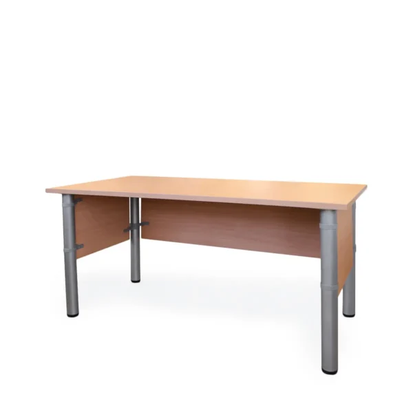Buko ir beržo spalvos kairinis kampinis biuro stalas