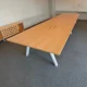 Buko spalvos ovalo formos LMDP posėdžių stalas.